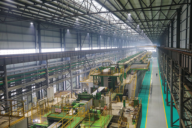 公司擁有1420酸洗冷軋聯(lián)合機組(PL-TCM)一套,機械由中國一重及中冶南方共同設計制造,電氣采用上海寶信軟件自動化控制系統(tǒng),機組設備配置合理,整體裝備達到國內一流水平。機械設備涵蓋激光焊接設備、噴射紊流式酸洗設備、高精度雙塔式切邊設備(SMS)、五機架竄輥式UCM連軋機、新型回轉式雙卷筒卷取機,軋機電氣采用秒流量控制系統(tǒng)。
